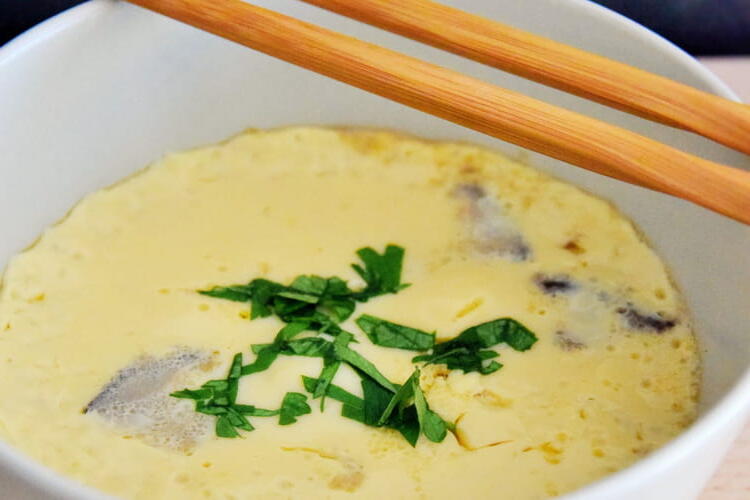 Chawanmushi is a savory egg custard, traditionally steamed in a tea bowl. This dish can be adapted in several versions by changing the broth and ingredients.