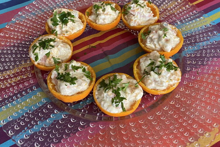 Tangerines with shrimp and fresh cheese, to be served cold!