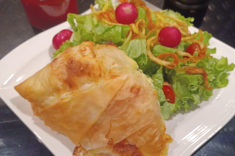 A warm appetizer served with a green salad! I only received compliments. Once the recipe is mastered, it is easy to make. I prepare it every Sunday.