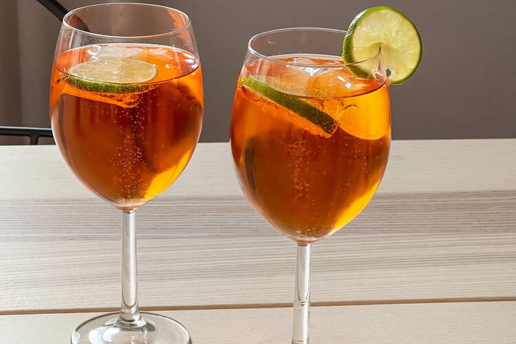 Direction to the region of Venice in Italy with this delicious trendy cocktail: the Spritz! Very easy and foolproof, give in to this original recipe as the traditional slice of orange is replaced by lime!