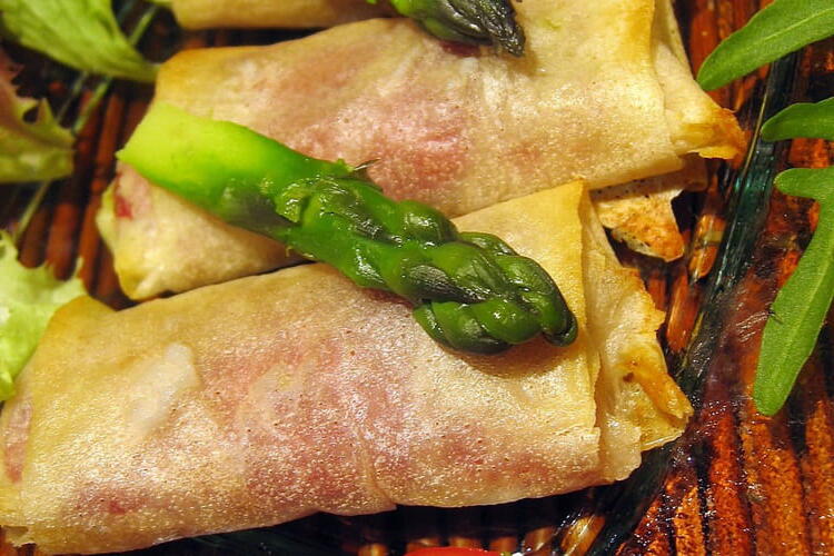 Crispy asparagus pastries, a dish that falls between winter and spring when the craving for green and fresh vegetables becomes stronger.