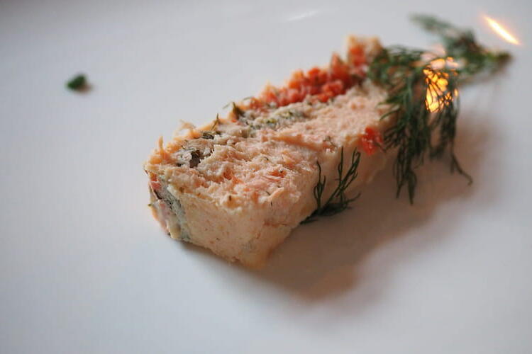 An original and fresh salmon loaf to serve as an appetizer or starter.