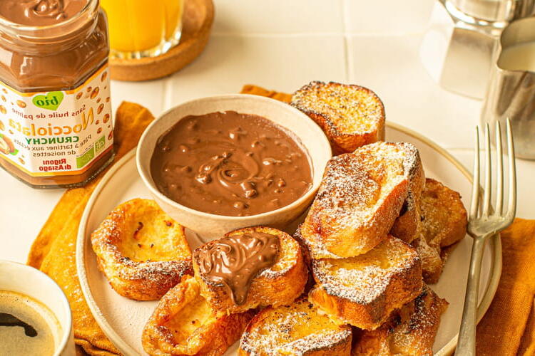 Easily prepare irresistible mini French toasts with a chocolate-hazelnut spread. With their delicious spread, these little treats are ready in no time.
