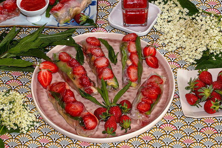 To kick off summer, I offer you these delicious and refreshing spring rolls with strawberries and tropical fruits.