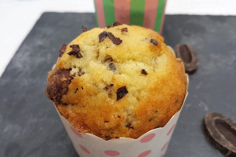 Delicious muffins with milk chocolate and cocoa nibs for a crunchy texture. A little cake that you can make with the kids, who will be thrilled.