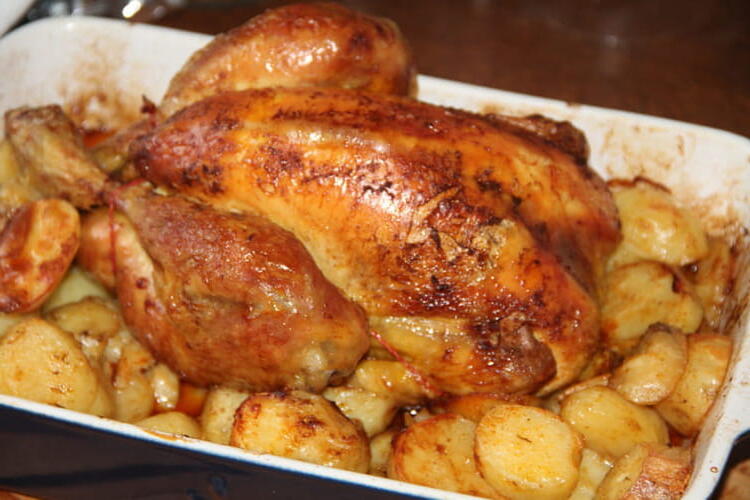 Enjoy this Sunday roast chicken with turmeric and paprika. This recipe guarantees well-cooked chicken without excessive heat, crispy, not at all dry, full of flavor, accompanied by melt-in-your-mouth potatoes that have absorbed the herbs and undergone a relatively long cooking time…