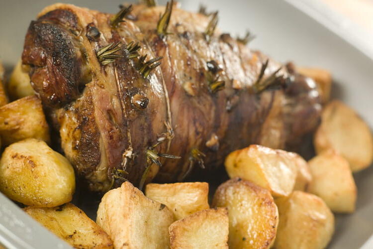 The unique feature of this leg of lamb is that it cooks for 7 hours. This cooking method ensures that the lamb is so tender that it can be cut with a spoon.