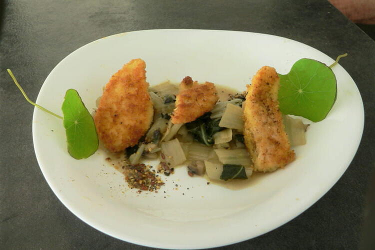 It’s a very simple and economical recipe. A complete dish with pork chops that I breaded for added tenderness, along with the chard leaves and stems that accompany it.