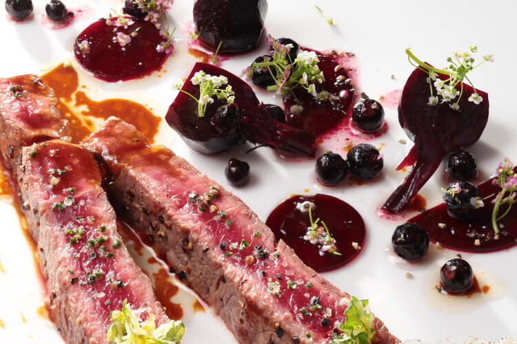 At the end of the year, beef celebrates on the plate! An exceptional recipe for rare ribeye with tangy beets, blackcurrants, and a pepper tuile. Your guests will delight their taste buds!