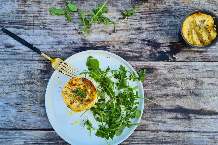In a baking dish, place the asparagus and pour the clafoutis mixture over it. Finish with a twist of pepper, and bake for about 25/30 minutes.