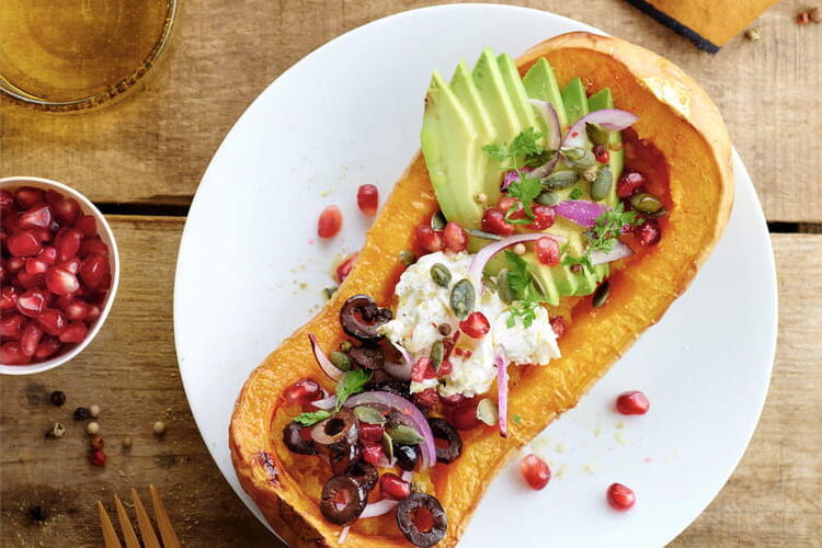 Indulge in this delicious autumn vegetarian bowl recipe. Photo credit: [removed].