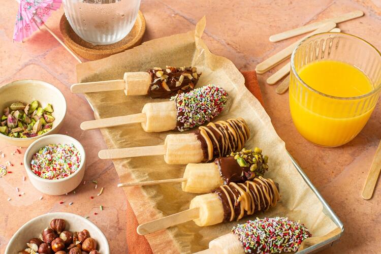 Enjoy banana pops with a crunchy chocolate spread. Simply coat bananas with this delicious crunchy chocolate for a tasty and healthy snack. An irresistible treat to enjoy without moderation!