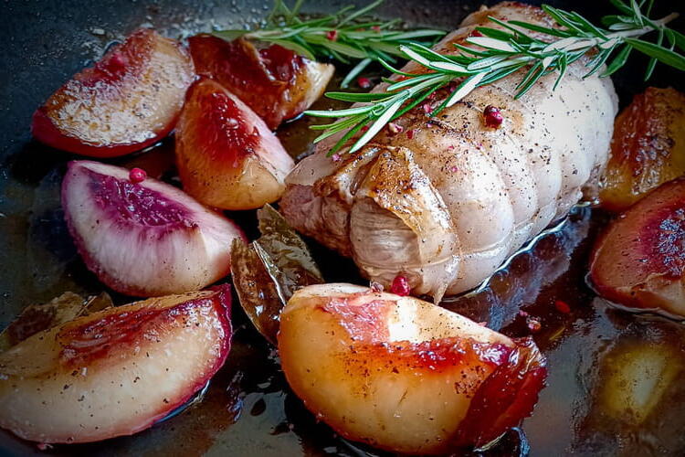 To finish, wrap the beef around the Swiss cheese. Sear over medium heat until the cheese is melted.