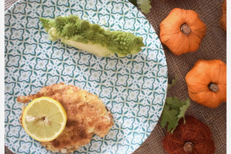 Serve on warm plates with a wedge of lemon and a slice of romanesco cabbage.
