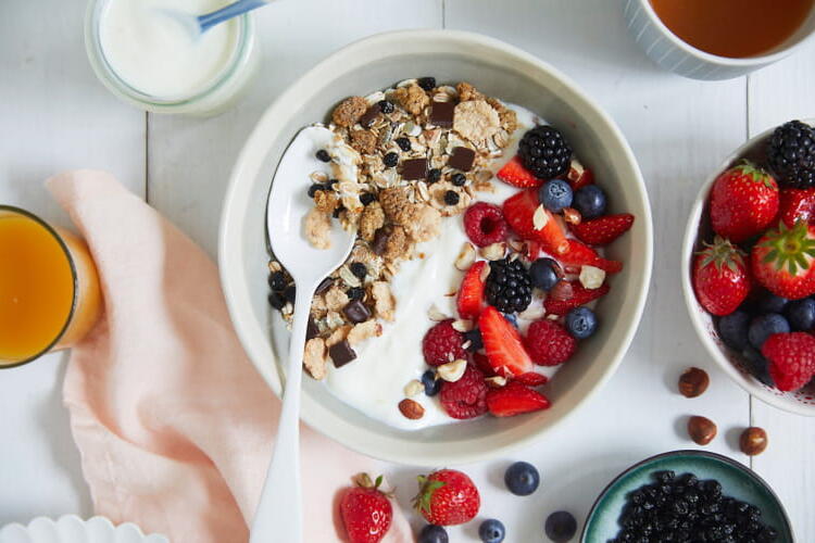 To finish Seasonal Treats Vary your breakfast bowl according to the seasons! In summer, focus on red fruits, apricots, peaches or nectarines, plums, and figs. In winter, opt for citrus fruits and tropical fruits instead.