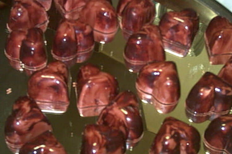 To finish, cover the molds with some milk chocolate. Invert the molds (the chocolates will fall out) and store the chocolates in a cool place (17/18°C) away from light and odors.