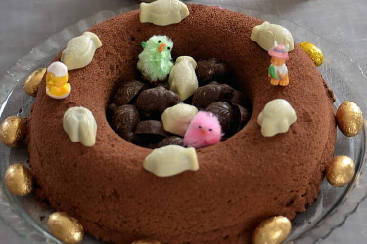Enjoy this Easter chocolate nest. Chocolate at Easter is essential! Here is the recipe for a delicious cake that is ultra easy to make, very soft and melting, indulgent and chocolatey for both kids and adults!