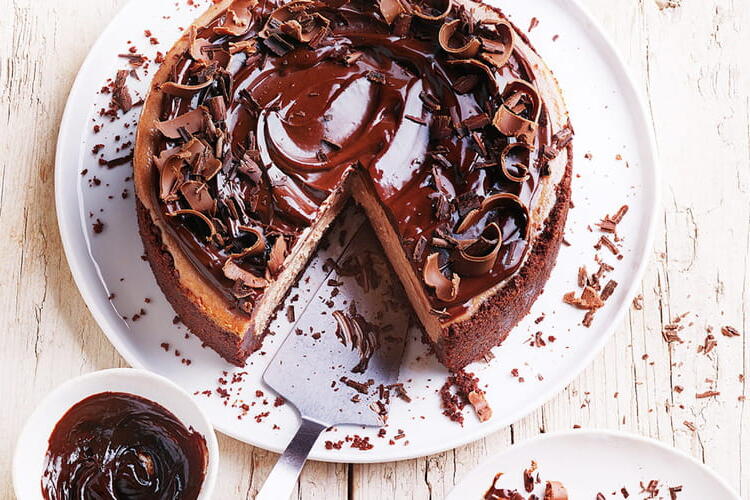 An ultra indulgent chocolate praline cheesecake recipe, perfect for events, this recipe serves 8 to 10 people! Recipe and styling: Annelyse Chardon Photo credit: Julie Mechali.