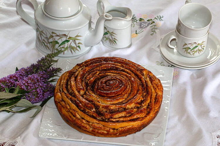 Roll the first strip onto itself. Place it in the center of the pan (greased if necessary, unless using silicone). Then take a new strip of dough and wrap it around the first rolled strip. Continue this way until all the strips are positioned.