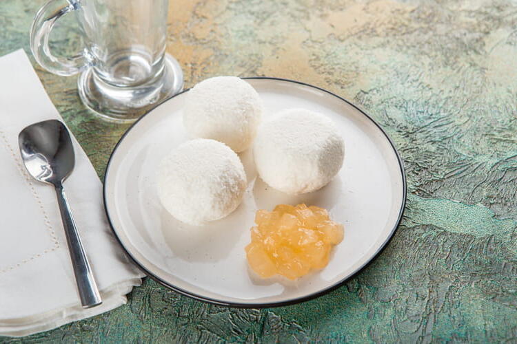 Take two cookies and put them in the jam to stick them together. This will form a ball.