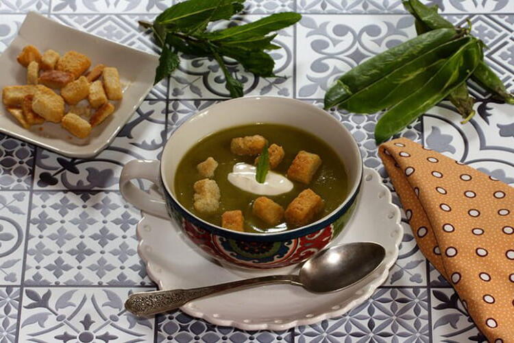 Creamy Pea Pod Soup with Mint