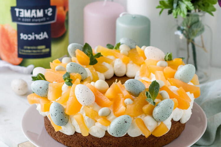 This year, a recipe for an original cake to celebrate Easter with family is proposed: an Easter crown with apricots accompanied by coconut whipped cream.