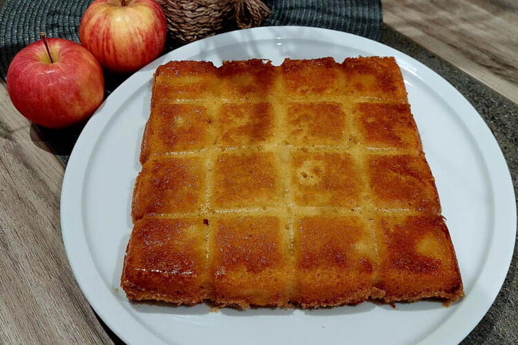 An easy recipe to make and very good. It can be made in any mold; just poke the cake at the end of baking with the tip of a knife to check if it is done. If it's cooked, the blade comes out clean; otherwise, continue baking for another 5 to 10 minutes.