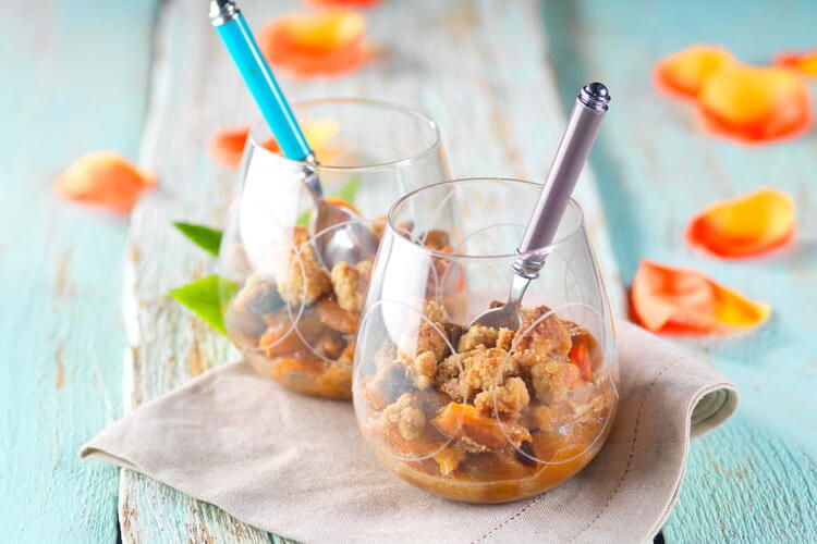 A fruity idea for a delicious dessert. This crumble recipe is very simple and quick to make. The flavor of the edible chestnut flour adds an extra touch of originality to this dessert. A recipe suitable for those with gluten intolerance and nut allergies.