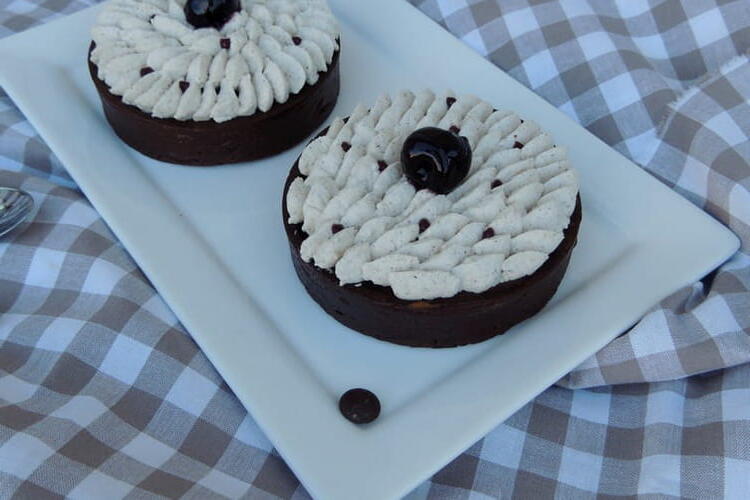 Mix the sugar and water, bring to a boil. Let cook for 5 minutes. Pour the syrup over the cherries. Cover and let cool completely, for at least 8 hours. Repeat the process: drain the cherries, put the collected syrup in a saucepan, bring to a boil and pour over the cherries. Cover and let macerate overnight.