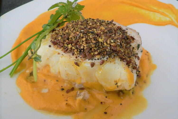 Remove the dish from the oven and drizzle with the remaining cream. Cover the gratin with breadcrumbs and sprinkle with a few dabs of butter.
