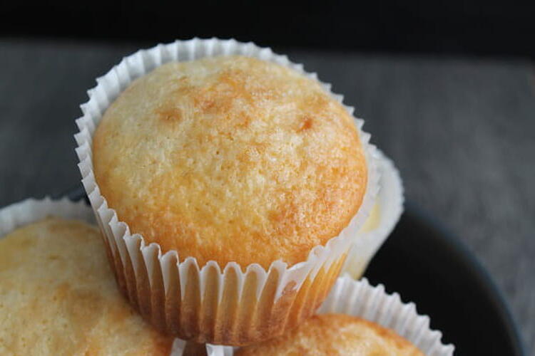 Whisk the eggs with the powdered sugar. Add the zest, lemon juice, and Greek yogurt, and mix. Pour in the oil and mix. Add the flour and mix well to achieve a smooth batter. Pour the batter into muffin cups. Sprinkle the batter with powdered sugar. Bake for 15 minutes.