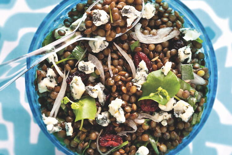 A fresh and tasty recipe for lentil salad with blue cheese.