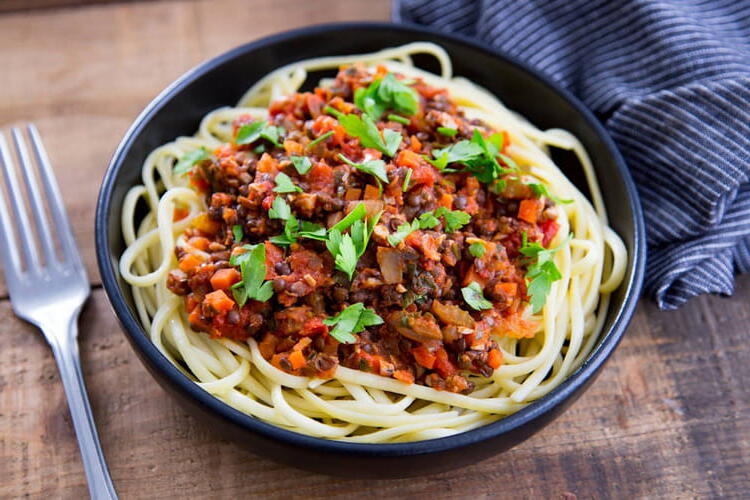 Serve hot generously covered with veggie bolognese sauce! A recipe suggested by a food service.