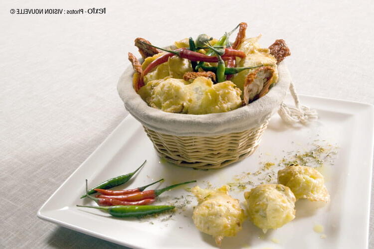 Whisk the eggs, salt, pepper, and thyme. Then add the sifted flour, baking powder, melted butter, chopped sun-dried tomatoes, and grated cheese. Mix well.