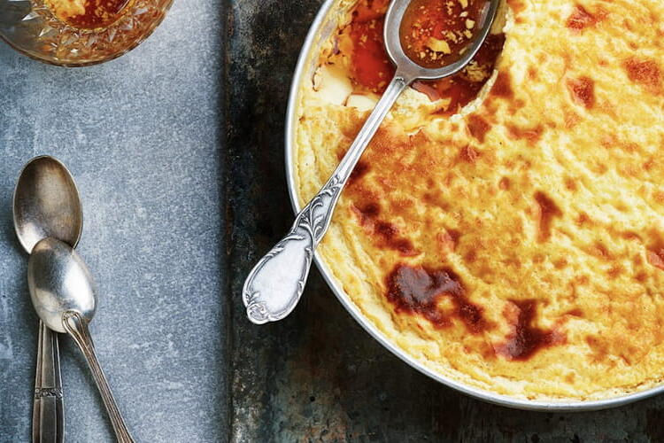 Place the mold in a larger dish filled with boiling water and place it in the cold oven. Turn on the oven to 120°C and leave for 20 minutes. Increase the oven to 180°C and leave for another 20 minutes. Crack the oven door and let it cool completely in the turned-off oven. Place in the refrigerator.