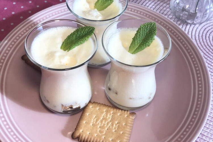 To finish, add chopped biscuits to the bottom of 4 glasses, then the mixture. Let the orange mousse chill in the fridge for 2 hours before enjoying.