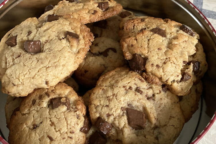 At this stage, the dough is quite firm, continue mixing by hand. Add the chocolate chips. Mix well to distribute them throughout the dough.