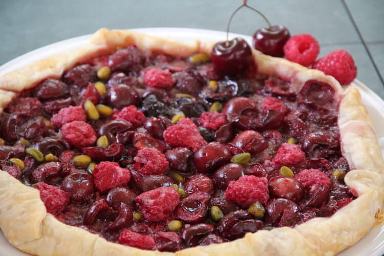 Quick Rustic Tart Recipe with Cherries, Raspberries, and Pistachios