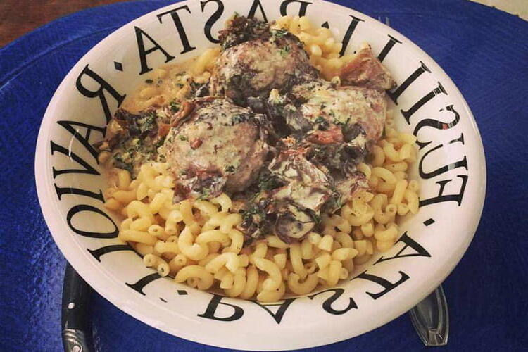 Beef meatballs with black mushrooms, a delight to accompany small pasta shapes.