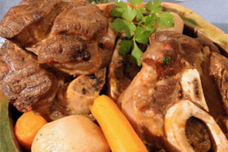 A beef shank started like a braised dish in a pot, then slowly browned in the oven and lightly flavored with an orange gremolata! A pure delight! Perfect to enjoy with family or guests.