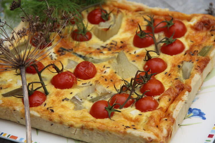 Some fennel in this week's vegetable basket... and so an idea for a tart with an anise theme... A little delight where fennel, tomatoes, and feta combine perfectly. Using the fennel seeds collected from the garden last year adds to the enjoyment...