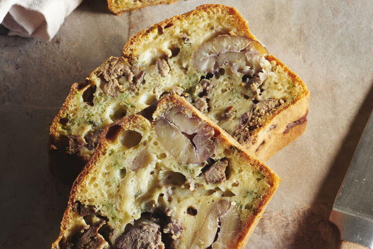 Recipe for Chicken Liver Cake with Parsley and Chestnuts.