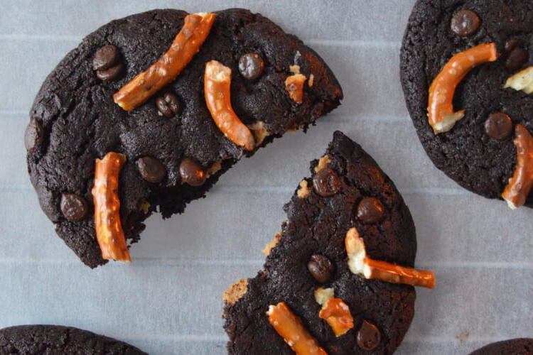 Chocolate, peanut butter, and ... pretzels. Together, they make deliciously addictive cookies.