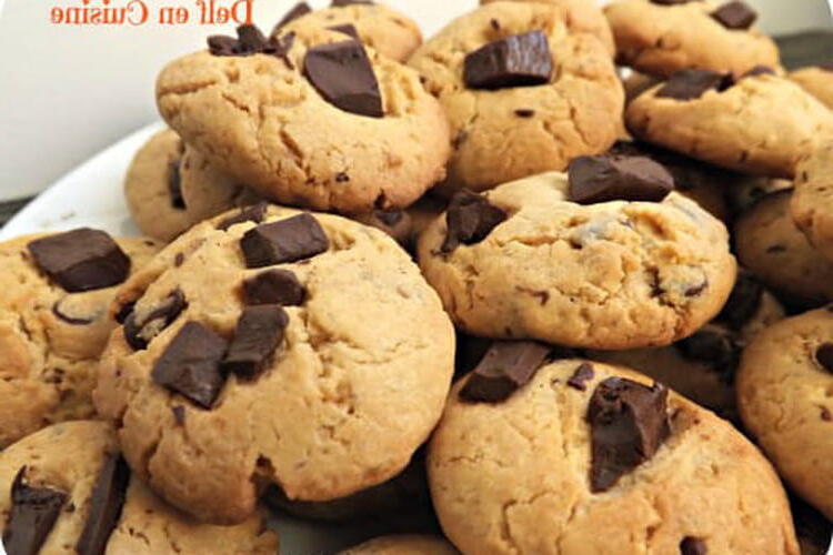 On a baking sheet lined with parchment paper, place small mounds of dough in round shapes and add some large pieces of chocolate.