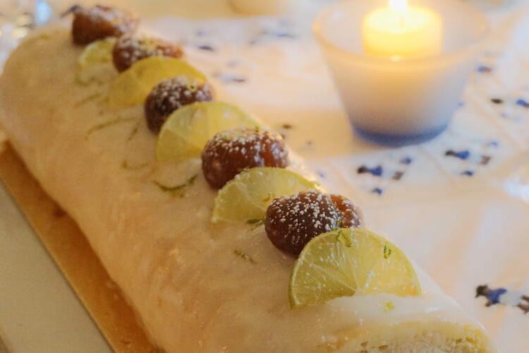 A taste of Christmas with this delicious yule log featuring cranberries and mascarpone. A log with the flavors of Quebec.