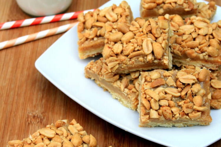 Pour the mixture over the biscuit and sprinkle with coarsely crushed peanuts.