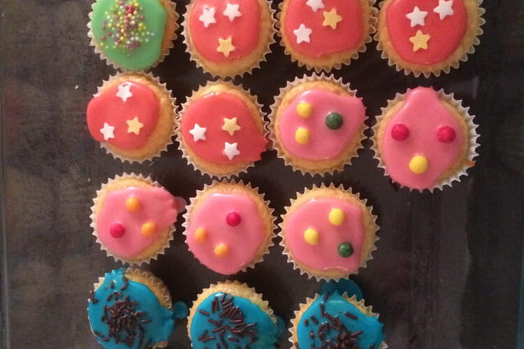 Then coat each cupcake with the back of a teaspoon. Be careful, royal icing tends to spread on its own, so it's better not to use too much and wait for it to spread rather than putting on too much and having it overflow.