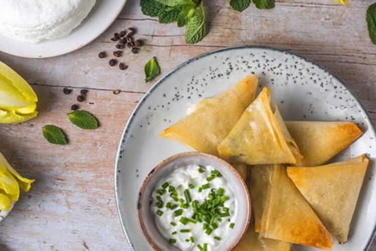 Recipe for Endive, Fresh Goat Cheese, Mint, and Pine Nut Samosas