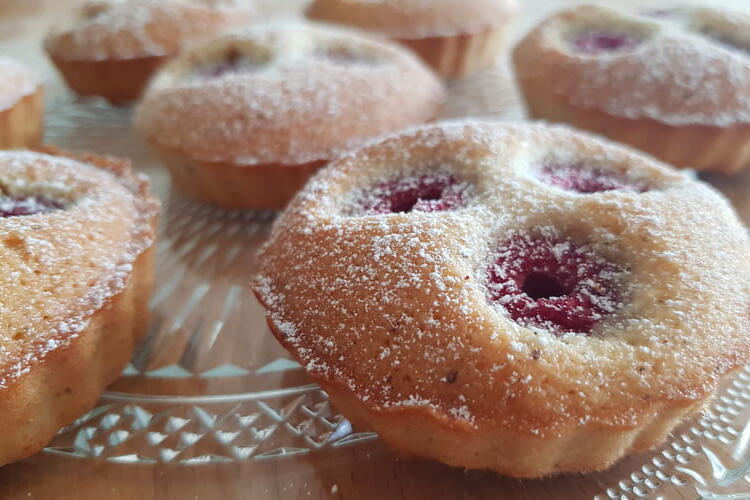 These cakes are just delicious and very quick to make! They are both crunchy on the outside and soft on the inside. The raspberry adds a touch of acidity that makes the cake a bit lighter.