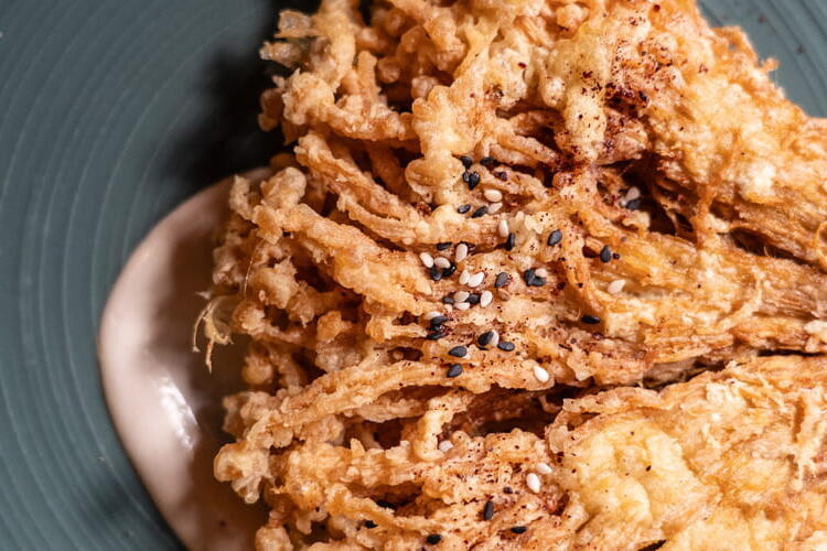 To try: this recipe for fried enoki mushrooms, Ezme sauce.